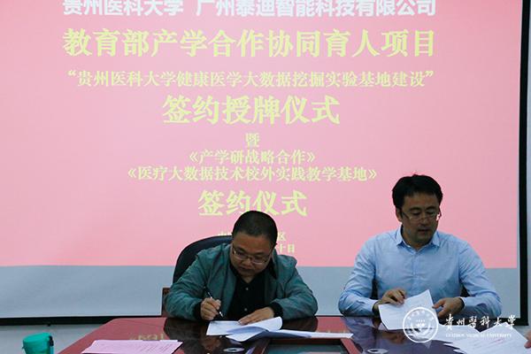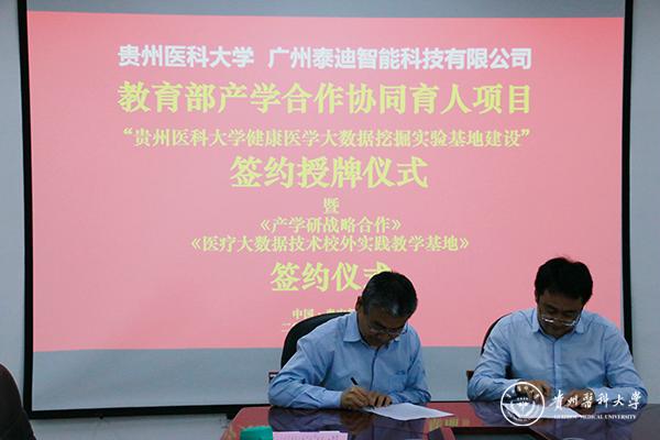 4月10日,beat365唯一官方网站、广州泰迪智能科技有限公司“教育部产学合作协同育人项目” 签约仪式在beat365大健康学院会议室举行,教务处处长温小军、科技创新与产业发展处处长涂波、大健康学院党委书记丁朝刚、计算机教育与信息技术中心主任刘涛、大健康学院院长陈玉其、大健康学院党委副书记杨丹、项目负责人叶远浓博士,广州泰迪智能科技有限公司总经理郭雨、区域经理郑廷和出席仪式,仪式由陈玉其主持。