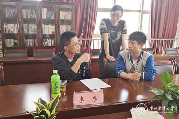 王玉林介绍学院学生创业公司并介绍学校相关创业优惠政策,鼓励大家创业,学校、学院将帮助大家联系科技创新与产业发展处对其“一对一”辅导帮扶,在创业项目、场地、资金、商事等方面做好指导和服务。辅导员王瑞介绍《贵州省农村建档立卡贫困户高校毕业生就业创业帮扶情况记录表》规范填写、存档工作,介绍毕业相关材料填写有关注意事项。