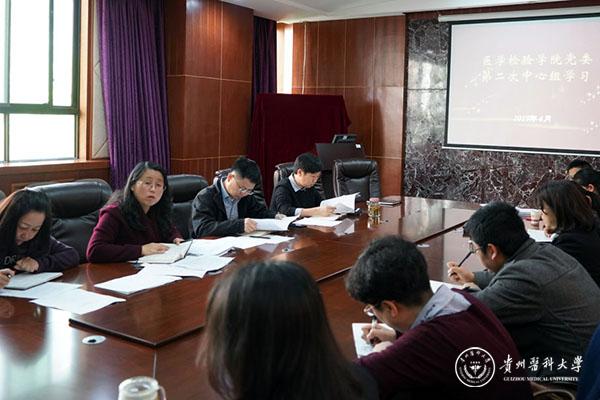 4月16日,医学检验学院在北京路校区基础二号楼三楼会议室开展党委中心组第二次理论学习,会议由学院党委书记蒋红梅主持,全体党委委员、各党支部书记、党小组长、党外代表人士、科室及教研室负责人参加。