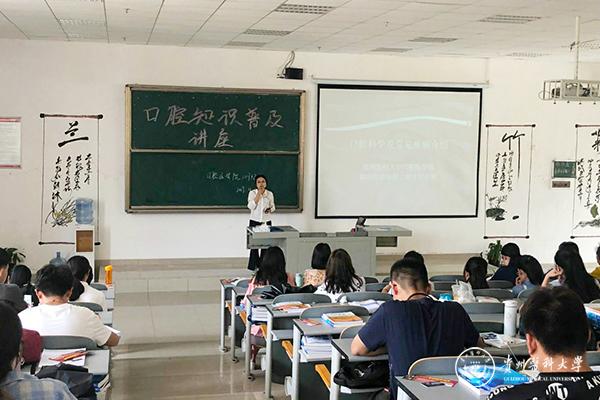 为普及口腔专业知识,进一步培养口腔专业医学意识,口腔医学院4月25日,在7402教室开展班主任讲师团系列讲座——口腔知识普及。本次讲座由戴海燕主讲,17级口腔甲班心理委员谢莎红钰主持,17级口腔甲乙两班共120名同学参与。