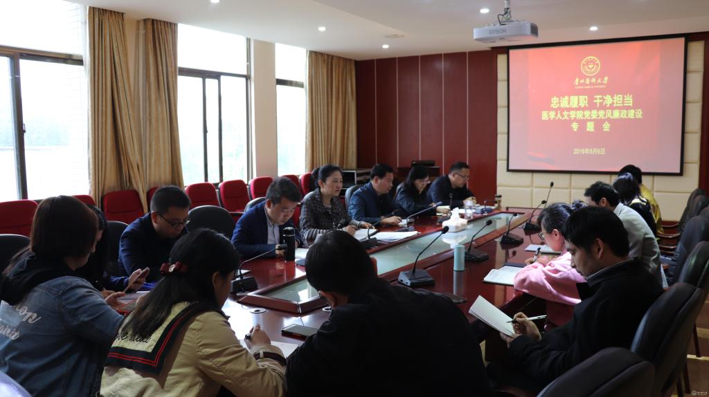 为全面执行党要管党、全面从严治党的各项要求,切实加强党风廉政建设工作,努力营造和谐健康办学环境,全力构建风清气正良好政治生态,5月6日,医学人文学院党委召开“忠诚履职 干净担当”廉政建设专题会和科级干部廉政集体约谈会。