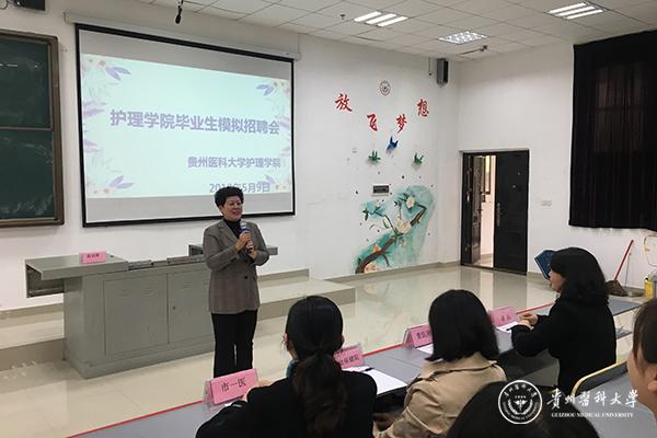 为提高毕业生的应变能力,提高求职面试的成功率。护理学院于5月6日、9日在南校区X4402、X4102教室举办了以 “把握机遇,抢占优势,职场先体验”为主题的2019届毕业生模拟招聘会。护理学院党委书记杨英、院长贾秀英、副院长刘志燕、各教研室主任、毕业班辅导员和全体新校区毕业生,参加了本次模拟招聘会。教学科研管理科负责人卢海霞主持活动。