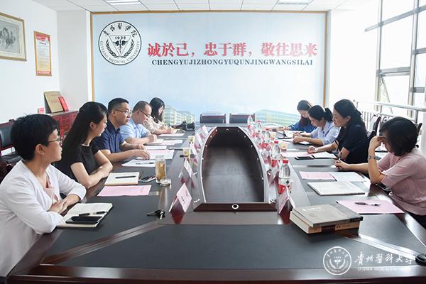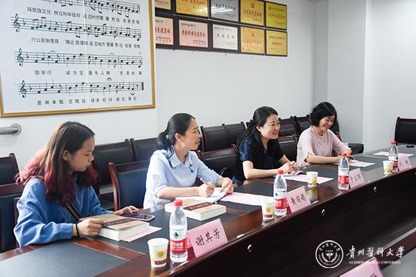 6月25日,贵州广播电视大学(贵州职业技术学院)党委宣传部、统战部部长于立群一行5人来校考察交流,座谈会在知雨楼3楼会议室召开,会议由beat365党委宣传部部长杨毅主持。