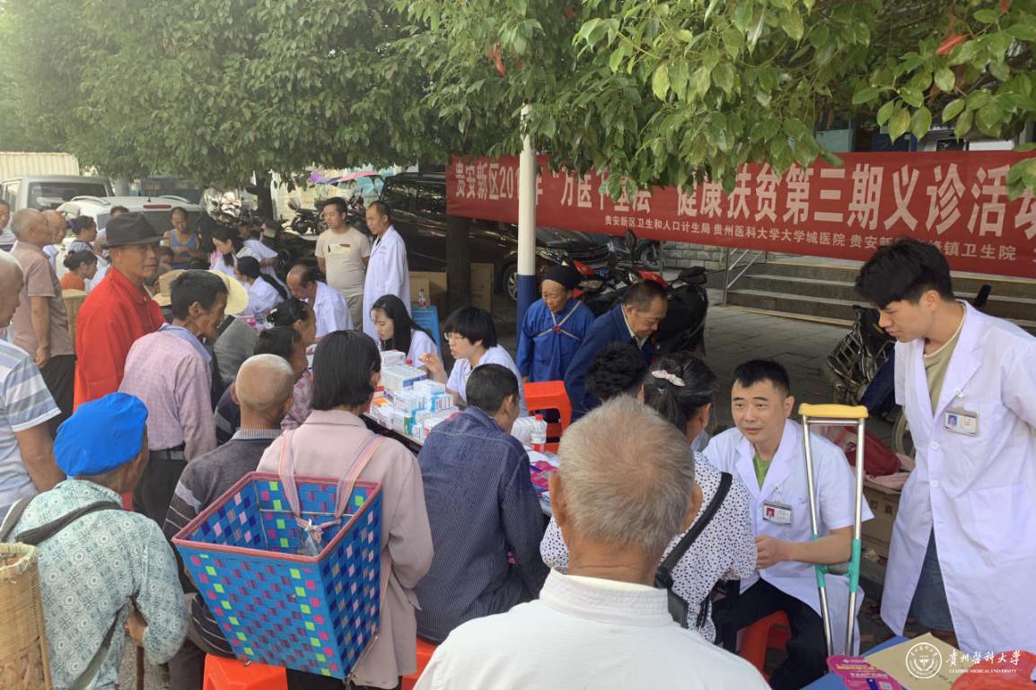 大学城医院分别与贵安新区高峰卫生院、贵安新区党武卫生院组建了义诊医疗队,参加义诊的医师10人,其中高级职称2人,中级职称4人,医技人数2人,护士人数4人,领导、服务人员、保障人员等5人;义诊人数农村建档立卡贫困户4人,农村特困供养人员及低保对象1人,医疗总人数158人;参加大讲堂群众人次64人,发放宣传资料487份,收住院人次1人。