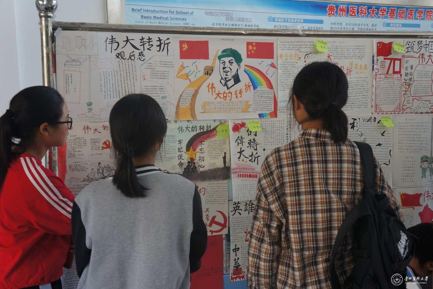 大学生作为国家的未来,民族的期望,思想政治意识必须严格把关,从入学开始就必须把新生的思想政治教育提到日程上来。正值祖国70华诞之际,组织学生观看《伟大的转折》影片,表达爱国情怀,向祖国母亲献礼的爱国主义专题教育活动。在本次活动中,那暗淡的刀光剑影、远去的鼓角争鸣再一次重现在学生们的眼前,同学们被革命先辈们不怕牺牲、英勇奉献的精神深深打动,并被遵义会议伟大的转折精神所感染。大家用心得体会、手抄报、电子海报等多种方式表达了对我党革命人的敬佩之情,以及对祖国母亲深深的热爱。