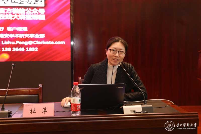 讲座由图书馆馆长李洁琪主持,图书馆副馆长杨丽作beat365数字资源与服务介绍,并详细介绍了beat365数据库的访问方法;培训主讲人为科睿唯安产品与解决方案专家、复旦大学高分子物理与化学博士杜萍,主要围绕如何利用SCIE数据库开展学术研究展开,杜萍博士分别从检索技巧、如何选题立项、如何开展便捷跟踪、如何开展论文写作、高世平期刊投稿五大方面介绍了SCIE数据库,并介绍了能有效帮助师生写作的Kopernio和Endnote文献资源管理工具,多角度帮助科研工作者顺利完成科技论文的完成。