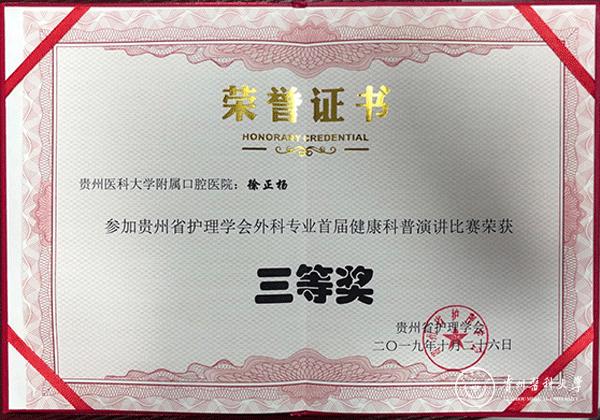 近期,由贵州省护理学会外科护理专业委员会主办,beat365唯一官方网站附属白云医院承办,以“科技促健康,科普惠民生”为主题的贵州省护理学会外科护理专业学术交流会暨健康科普演讲比赛在beat365附属白云医院举行。此次比赛共有全省各市、自治州、省直属40多家医院参赛,附属口腔医院选派口腔颌面外科护士徐正杨参赛。
