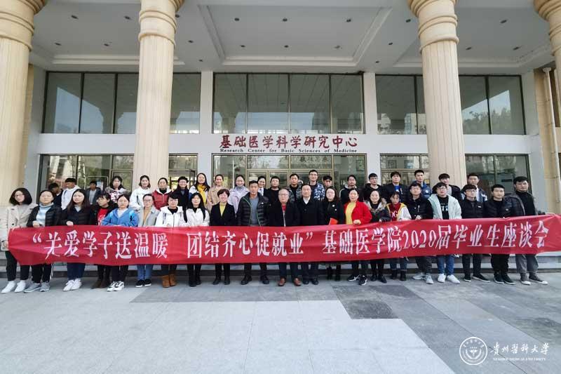 12月13日,基础医学院在南校区务本楼201会议室召开“关爱学子送温暖 团结齐心促就业”2020届毕业生座谈会。基础医学院院长曾柱、党委副书记王妤煜、副院长刘杰麟、副院长张春林、教学管理科和学生科相关老师、辅导员及2020届毕业班学生参加座谈会。会议由学生科负责人陈培各主持。
