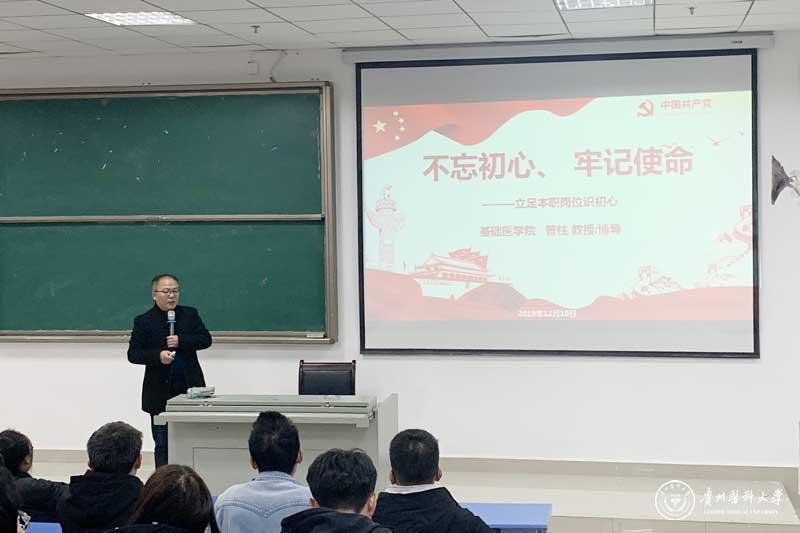 曾柱以“立足岗位守初心”为主题,从“不忘初心、牢记使命”主题教育的总要求;“守初心”内化于心的体现、外化于行的“执行力”;结合自身实际,立足本职岗位识初心几方面向同学们谈到“守初心”就是科研工作者的原生动力,希望同学们要不忘初心,牢记使命,努力学习,成为国家栋梁之才。