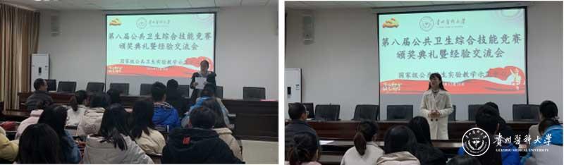 随后,部分优秀选手进行了技能竞赛的经验交流。一等奖获得者,2015级预防医学专业牟佳龄同学与大家分享了此次竞赛的心得体会,她用“为什么要参赛?”、“参赛需要准备什么?”、“参赛意义是什么?”三个问题对本次竞赛进行了剖析,表示“公共卫生综合技能竞赛”是公卫人将理论应用于实践的一个很好的练兵场,而扎实的基础理论知识则是实践应用的前提;2016级预防医学专业张露文同学表示本次竞赛最大的收获不仅是实践技能的提升,还深刻认识到了比赛中团队协作和面对问题时沉着冷静思考的重要性。最后参赛同学纷纷发表了个人意见和建议,为公共卫生技能竞赛越办越好建言献策。