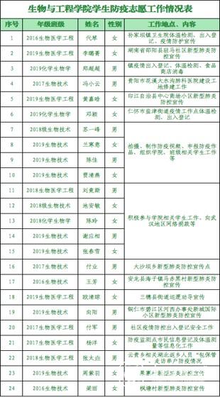 为了更好地防控疫情,切断病毒的传染途径,进一步做好防疫工作,疫情期间,作为一名贵医人、生工人,秉持着“诚于己,忠于群,敬往思来”校训,生物与工程学院同学们积极响应家乡的“战疫”号召,坚守在家乡的每一个防疫点。