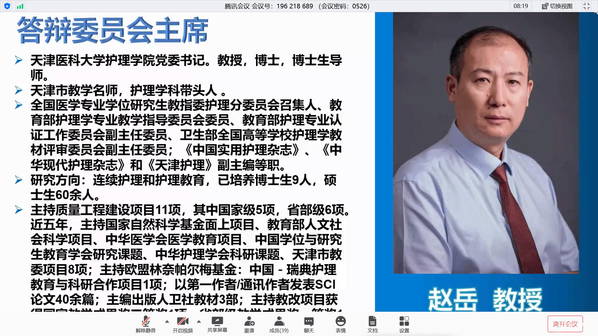 本次答辩有幸邀请到天津医科大学护理学院党委书记、博士生导师、全国医学专业学位研究生教指委护理分委员会召集人、教育部护理学专业教学指导委员会委员、教育部护理专业认证工作委员会副主任委员赵岳教授担任答辩主席,贵州中医药大学护理学院党委书记、国家自然科学基金评审专家石国凤教授、遵义医科大学护理学院院长江智霞教授、beat365唯一官方网站公共卫生学院王子云博士、beat365唯一官方网站基础医学院徐键炜博士担任答辩委员,护理学院王芸芸讲师担任答辩秘书。护理学院及附属医院导师、专业教师和全体研究生同学近50人旁听学习。