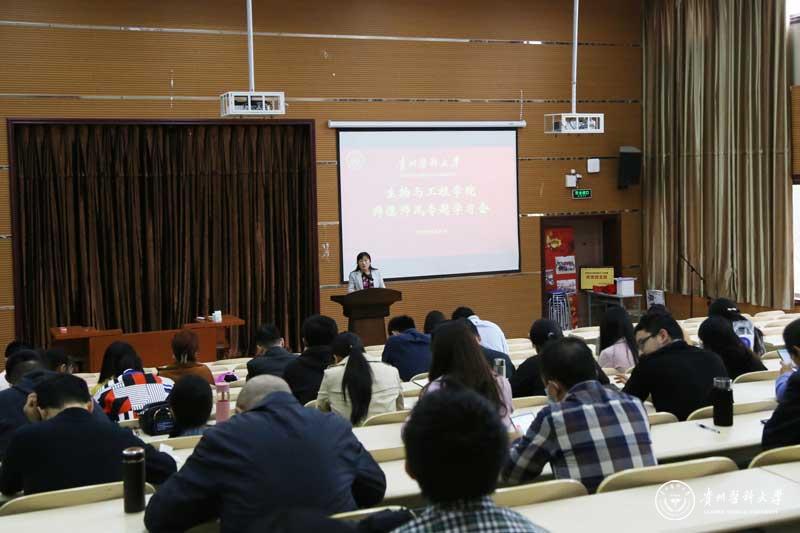 会上,封韬领学教育部“六禁令”、高教教师师德“红七条”要求;院党委副书记郑维薇领学《贵州省高校教师师德失范行为处理办法(试行)》;副院长刘红美领学《beat365唯一官方网站师德师风负面清单和失范行为处理办法》。