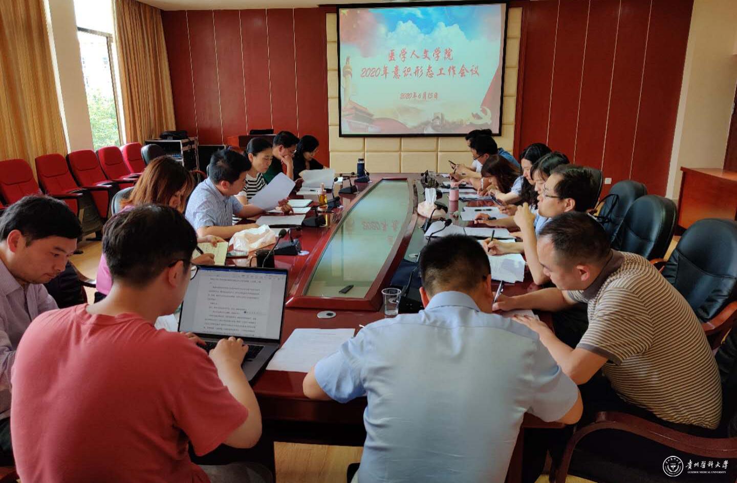 为全面部署2020年意识形态工作,落实意识形态工作责任制,6月15日,医学人文学院党委召开2020年意识形态工作会议,学院党政领导、各科室负责人参加会议,党委副书记张健主持会议。