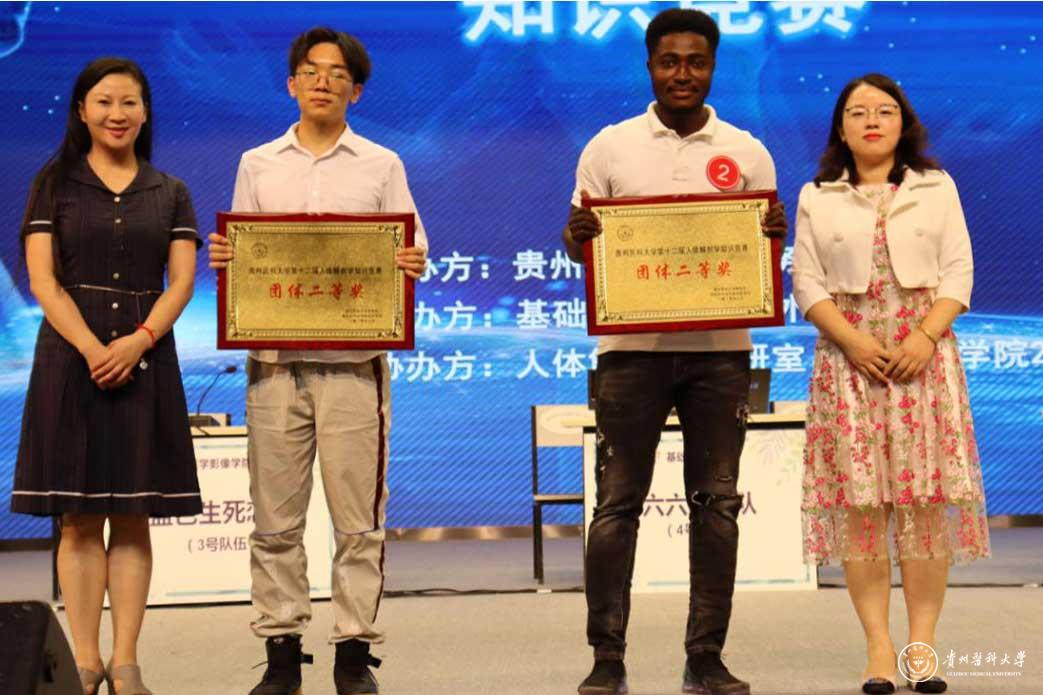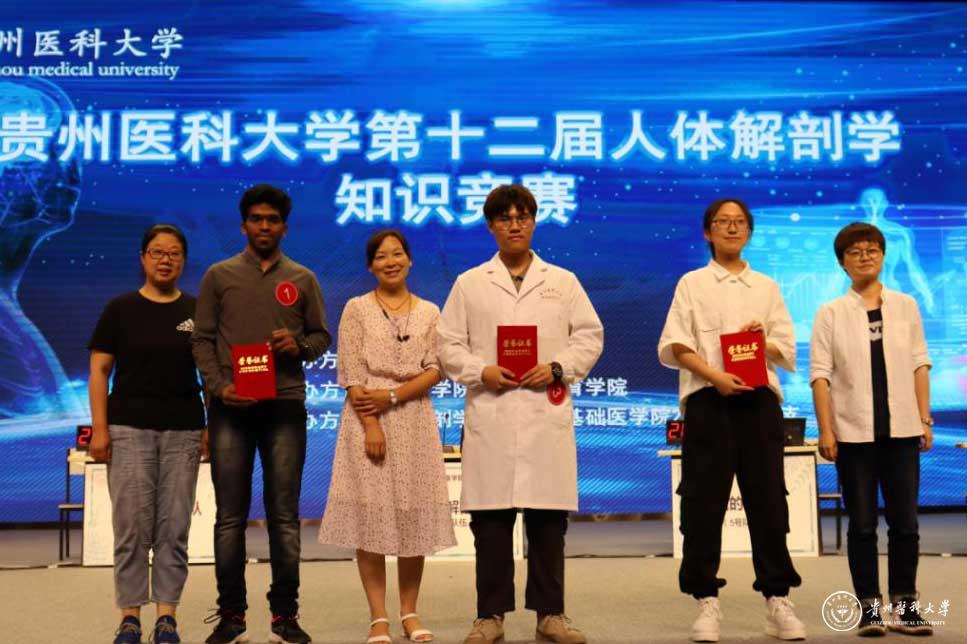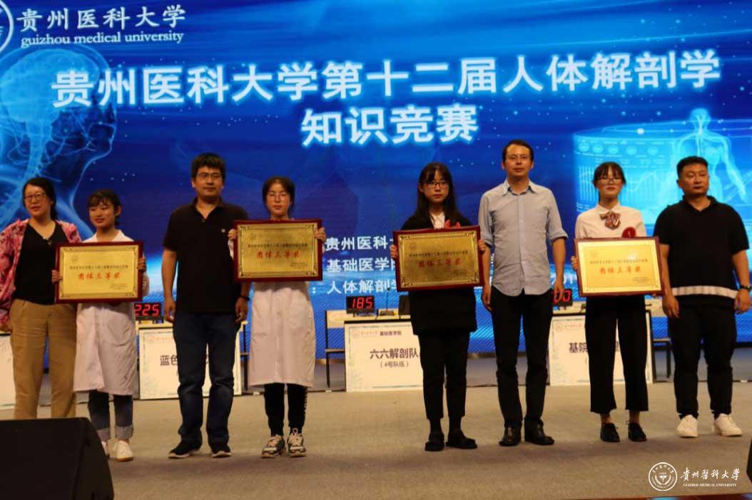 竞赛共设有“寻脉渐进”、“风雨同舟”、“箱内摸骨”、“博学速记”、“绝地逢生”五个环节。比拼过程中,评委的专业点评、选手的精彩答题、场下观众的积极互动获得了一次次热烈的欢呼和掌声。其中,基础医学院“六六解剖队”在“风雨同舟”图片题环节,拿到了此环节全场唯一的满分;在“绝地逢生”环节来自海外教育学院的“TEAM OF ACHIEVERS”是唯一选择30分风险题的队伍并成功扳回一局;来自医学影像学的蓝色生死恋队全场表现极佳分数一直遥遥领先......经过激烈角逐,医学影像学院代表队荣获一等奖;基础医学院、海外教育学院代表队分别荣获二等奖;儿科学院、麻醉先疯队、口腔医学院、基础医学院代表队荣获三等奖。基础医学院参赛选手张玉典、医学影像学院参赛选手张杰、海外教育学院参赛选手Adarsha获得优秀个人奖。