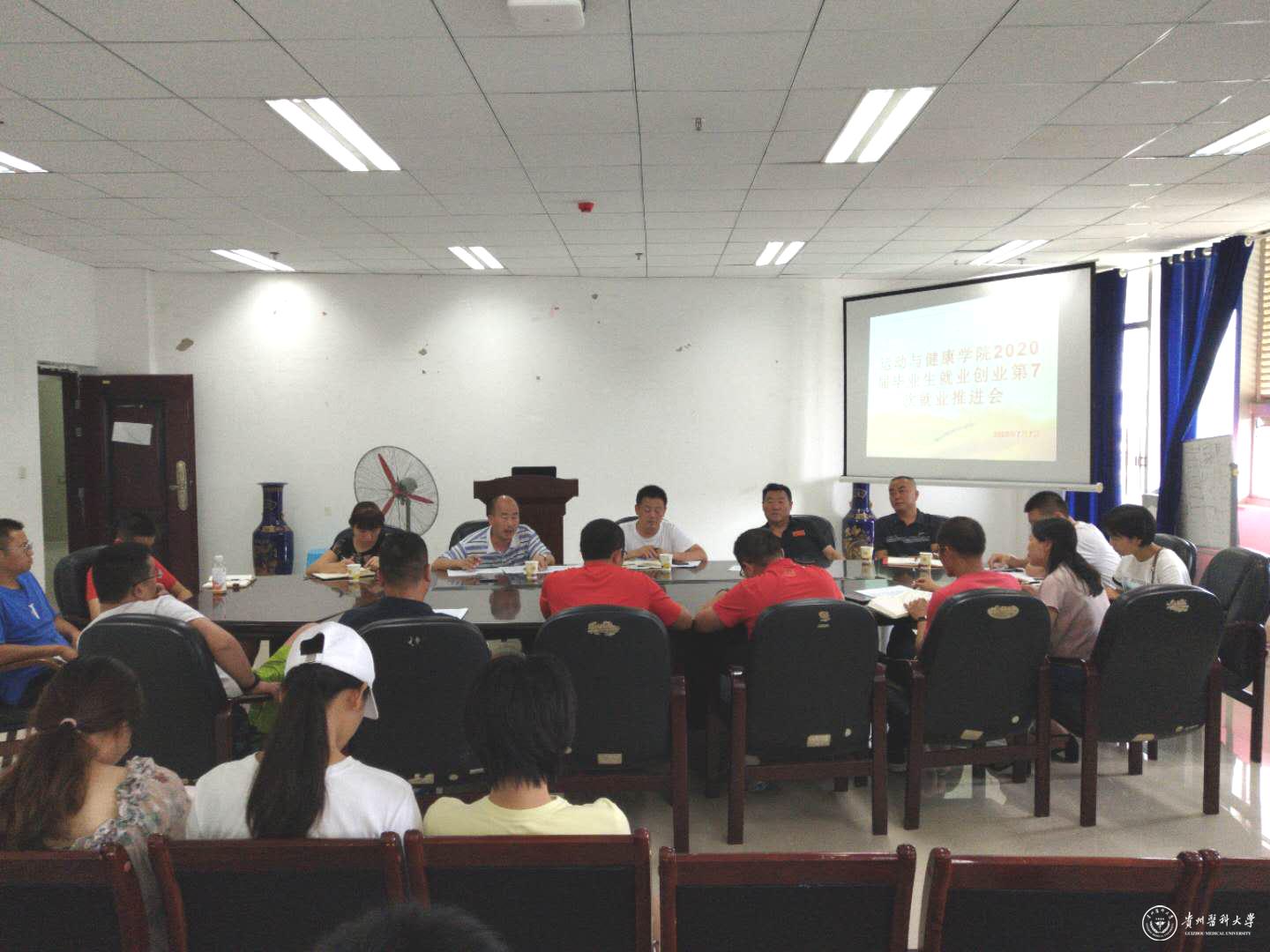 7月7日,运动与健康学院2020届第7次就业创业推进会在体育馆三楼会议室召开,机关党委书记邓舟和王晶老师进行指导。学院院长国伟,副院长陈庆,以及运动与健康学院参与就业工作相关职能部门负责人及老师参加。会议由学院党委书记姚思勤主持。