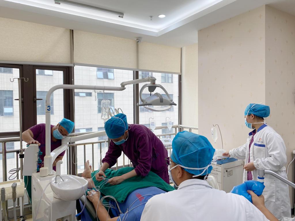 8月7日,口腔医院麻醉科、手术室与修复种植科共同完成了院内首例“舒适化诊疗条件下美学区重度垂直向骨缺损种植手术”,手术顺利,患者恢复情况良好,自行步出恢复室。