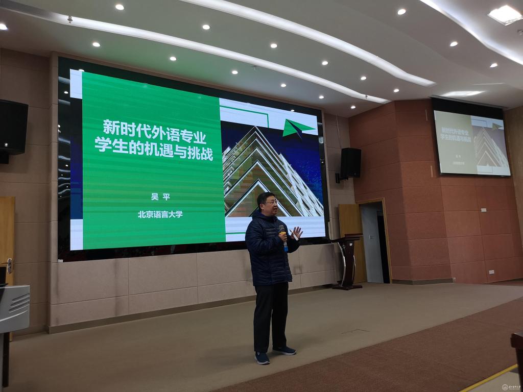 上午,吴平教授以“打造新时代教师科研团队”为主题,从国家战略需求角度,为外国语学院教师提出科研思路建议,并就教学团队和科研团队建设提出意见建议。座谈会上,老师们与吴平教授积极交流,吴平教授对老师们提出的思考和疑问一一作出解答。下午,吴平教授在广德楼六楼录播厅为一年级新生作了题为“新时代外语专业学生的机遇和挑战”的讲座,对学习的计划性和自律性提出建议,也从“新文科”背景下对学生的创新精神和合作精神提出期望。讲座结束之后,同学们踊跃提问,吴平教授对学生关心的学习目标、职业发展和考研等问题进行了耐心的解答。