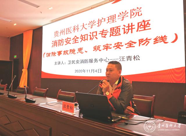 为进一步提高全体师生的消防意识和应急反应能力,11月4日,护理学院在南校区道德讲堂开展了“消防安全宣传月”主题党日活动。本次活动特别邀请了贵阳卫民安消防知识宣传中心宣教部主任汪青松为护理学院全体教职工和学生做了《消防安全知识专题——消除事故隐患,筑牢安全防线》讲座。活动由教职工党支部张仁莉主持。