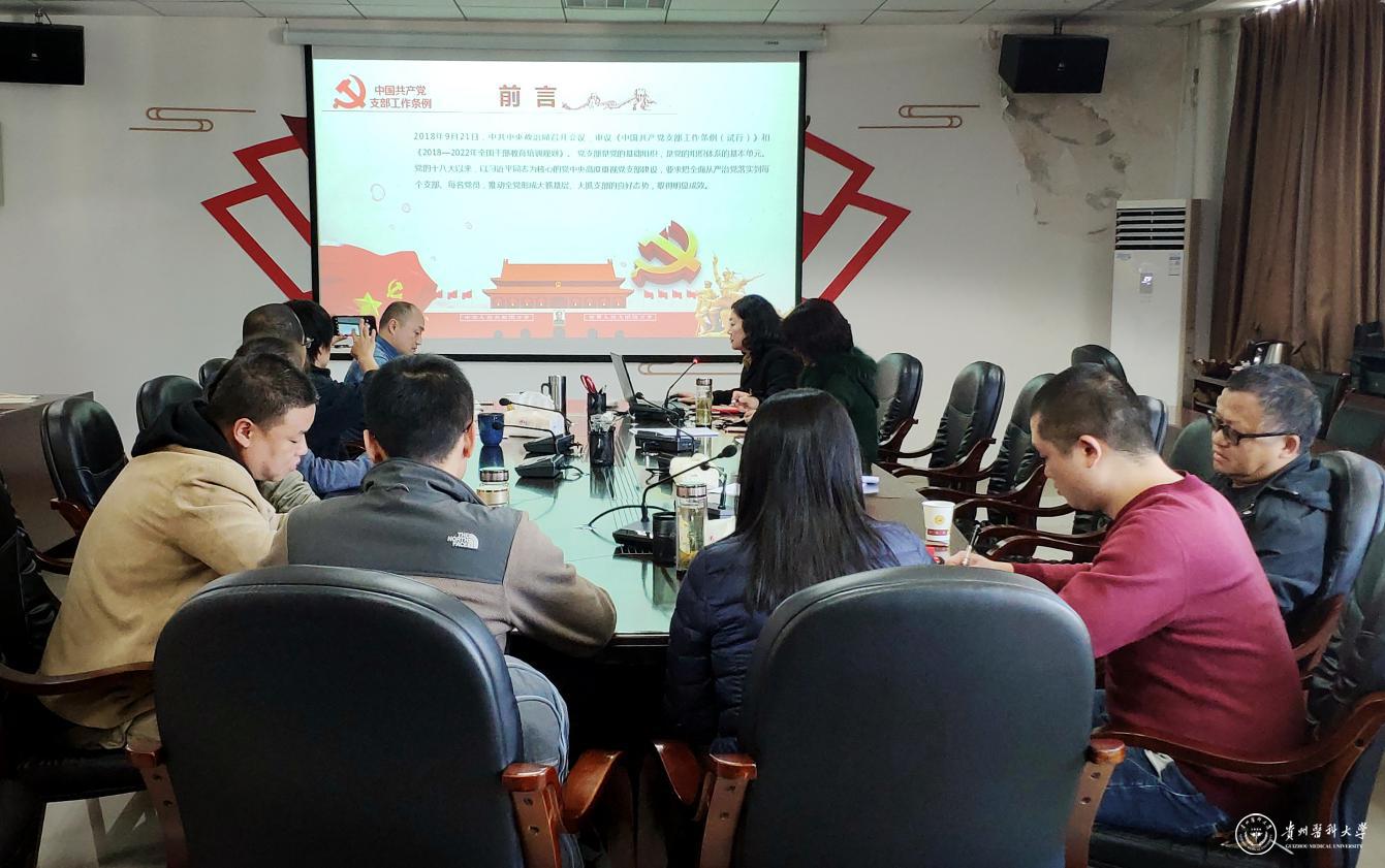 她强调,党中央对党支部建设的高度重视,表明了党中央推进全面从严治党从上到下、一贯到底的坚强决心。各支委要深入学习掌握《条例》精神实质,认真开展对照检查,按照《条例》要求完善党支部标准化规范化建设工作,要求全部达到学校党委2020 年度党支部标准化规范化建设验收标准。并以此次学习为契机,进一步加强支部党员的学习和管理,提升党支部组织力,强化支部政治功能,充分发挥党支部战斗堡垒作用。