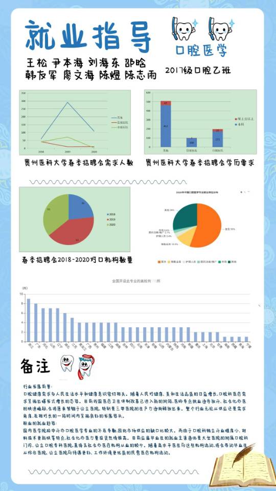 ③饼状图中我们了解到多数口腔医学毕业生毕业后选择本专业就业,证明同学的专业认同度较高。