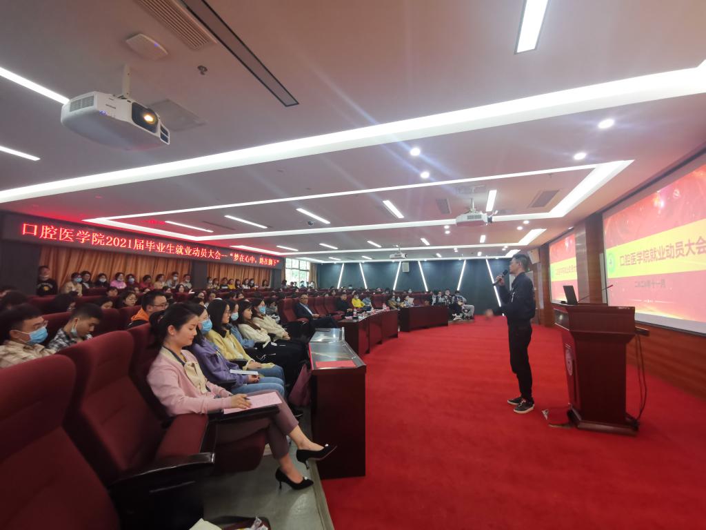 为让毕业生明晰当前严峻的就业形势,把握好就业机会,11月19日,口腔医学院2021届毕业班就业动员大会以“梦在心中,路在脚下”为题,在北校区临床技能中心207室召开。学校招生就业处副处长李季,口腔医学院党委书记张军梅,党委副书记、院长马洪出席本次会议,会议由学生管理科负责人张婷主持。