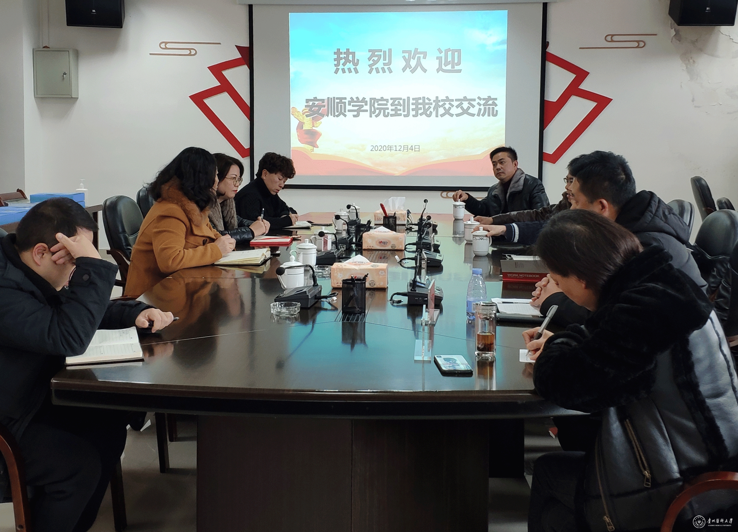 12月4日,安顺学院后勤管理处处长邬贤芳、副处长张家刚,计划财务处处长李建华,工会主席史贤琴,国资处副处长陈观黔,基建处副处长曾茂龙一行7人到beat365后勤管理处(后勤集团)开展工作交流,座谈会在南校区颂雅楼五楼会议室举行。beat365后勤管理处领导班子、相关科室(中心)负责人参加会议,会议由后勤管理处党总支书记张玲玲主持。