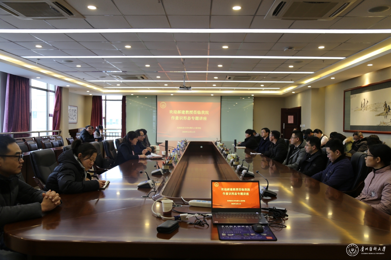 12月11日,生物与工程学院在知雨楼5楼会议室开展意识形态工作专题讲座,此次讲座邀请到贵州省委党校科学社会主义教研部郝建教授作专题辅导,生物与工程学院全体教职工参加,院党委书记封韬主持。
