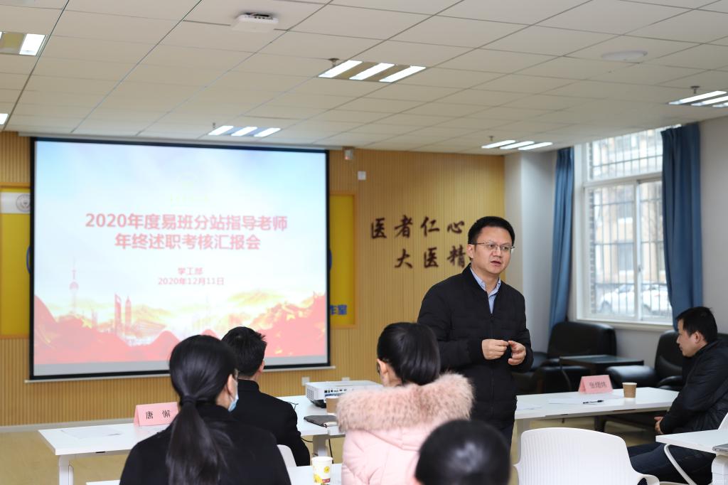 为推进易班分站建设,提升分站指导老师业务指导能力,12月11日,beat365在颂雅楼1-15会议室开展了2020年度易班分站指导老师考核汇报会。本次考核工作中,beat365唯一官方网站学工部部长王韬、贵州民族大学资助中心主任唐懈、贵州中医药大学学工部副部长张熠炜担任考核评委。汇报会由王韬主持,学工部全体工作人员、各学院易班分站指导老师参会。