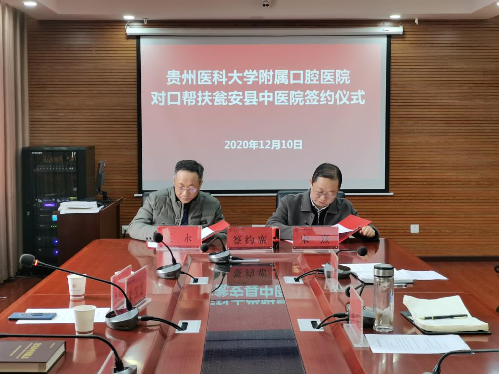 听取汇报后,彭耀学交流发言,对口腔医院三年的真帮实扶表示感谢,并对下一步其口腔科发展规划作了长远谋划。王刚对帮扶医护人员结合瓮安县中医院实际开展的形式多样化的帮扶工作表示认可,并提出三点要求,务必在工作中注意人身安全,遵守劳动纪律;帮扶应积极开展学术讲座、新技术申报、远程会诊工作;对疑难病历上下转诊要做好台账登记,并及时将数据报送院医务科。随后,口腔医院副院长王永与瓮安县中医院院长宋熹作为双方代表签订了第二期对口帮扶协议。