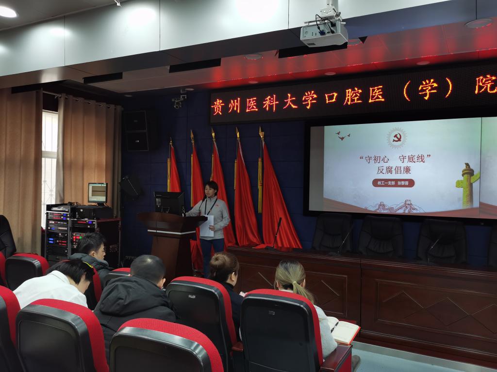 为进一步加强党风廉政教育,帮助党员干部筑牢反腐倡廉的思想道德防线,同时强化党规党纪学习,力促党风廉政建设,12月18日,口腔医(学)院教工一支部组织开展了2020年支部工作总结大会暨“守初心 守底线”主题党日活动。教工一支部全体党员、发展对象、积极分子参加活动。活动由组织委员张黎蓉主持。