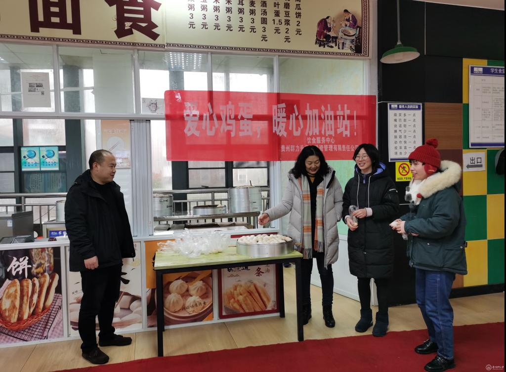 寒冬送温暖,真情暖人心,当学生处于紧张的期末考试之时,企业家黄可心向beat365捐赠了9000枚在扶贫地区采购的鸡蛋。1月6日至8日,饮食中心在各食堂早、中、晚餐时开展“爱心鸡蛋·暖心加油站”活动,将煮熟的爱心鸡蛋免费发给前来食堂就餐的学生食用。