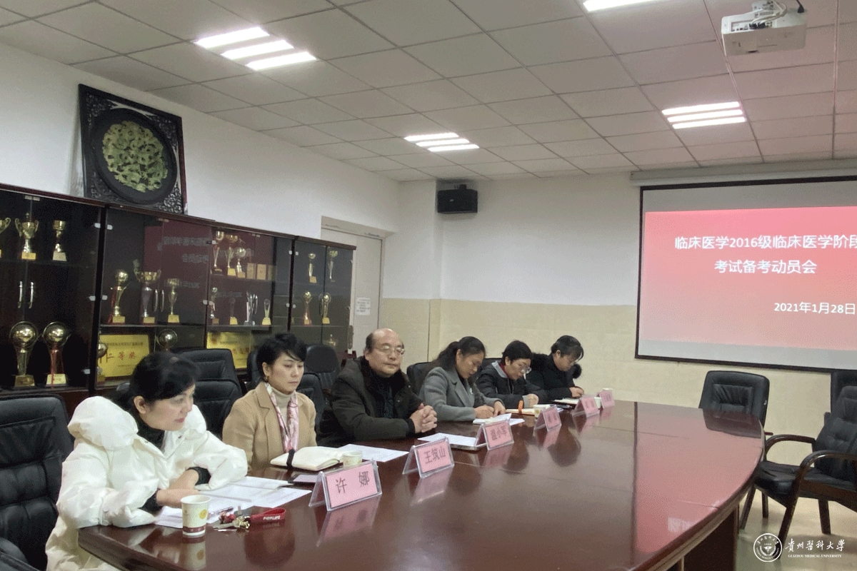 1月28日,临床医学院通过线上+线下的方式举办2016级临床阶段考试备考动员会。教务处处长温小军、临床医学院党委书记周红、副院长戚璐、教学管理科、生产实习科主要负责人、临床医学2016级学生1237人参加会议。会议由临床医学院党委副书记王筑山主持。