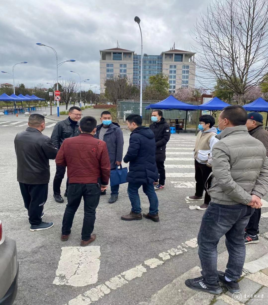 3月1日,贵安新区疫情应急处置办王友海、大学城街道筹委会政法工作组一行到beat365指导学生开学前疫情防控准备工作,校长办公室主任孙西凌、后勤管理处处长赵平、保卫处副处长黄应龙陪同走访并详细汇报了beat365春季开学疫情防控工作准备情况。