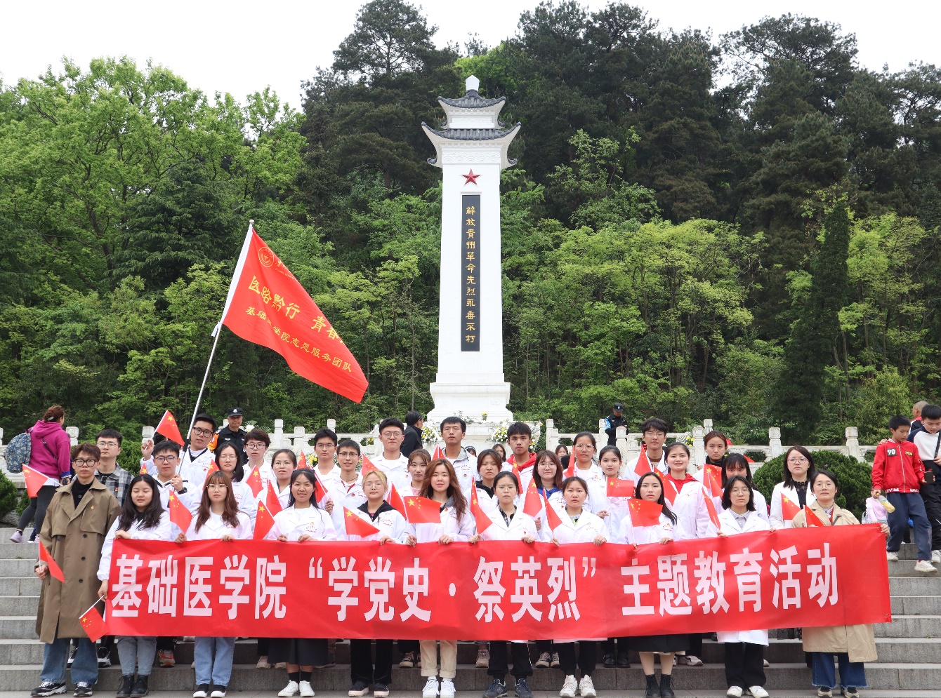 4月3日,基础医学院组织师生到黔灵公园解放贵州革命烈士纪念碑,开展“学党史·祭英烈·守初心·永传承”活动。院党委副书记王妤煜、分团委、辅导员及学生代表参加。
