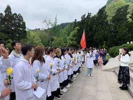 王妤煜为此次活动致辞,希望同学们通过“学党史 祭英烈”主题教育活动,深切缅怀革命先烈英勇不屈的斗争精神和爱国主义情怀,坚定理想信念,弘扬beat365伟大援鄂抗疫精神,珍惜当下美好时光,刻苦学习,爱党、爱国、爱校,传承红色基因,争做时代新人,将来为祖国医药卫生事业的发展贡献智慧和力量。