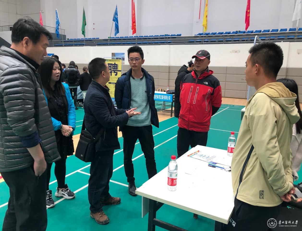 运动与健康学院书记姚思勤、院长国伟、副书记陈庆与用人单位深入交流,了解用人单位对人才需求的现状,征求对人才培养的意见和建议,同时对参加招聘会的学生进行就业指导。