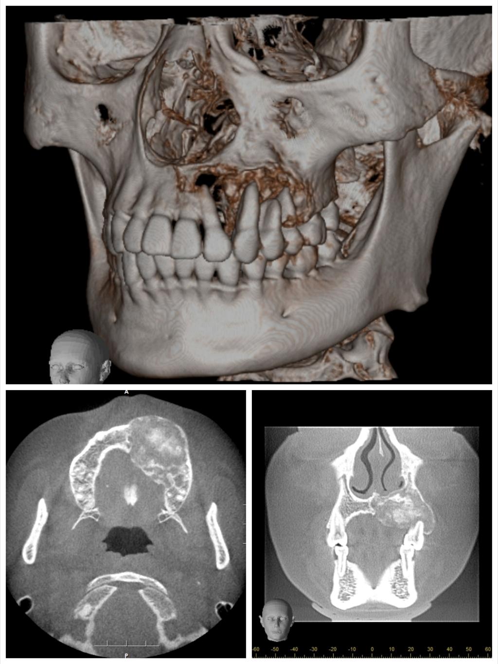 患者今年25岁,是一名年轻的母亲,1年前左侧上颌牙龈出现无痛性肿块,肿块逐渐增大,导致左侧面部畸形和牙松动。心急如焚的她咨询多家医院后,就诊口腔医院口腔颌面外科,口腔颌面外科主任吴亚东了解其病情后,制定了详细完善的个性化手术治疗方案,用血管化腓骨移植修复左侧上颌骨肿瘤切除后的缺损,既保证了术后不会因为硬组织缺失而导致面部塌陷,也能为后期种植牙修复提供足够的骨量。由于患者为年轻女性,为避免在面部留下明显的瘢痕,手术没有行上唇正中至鼻旁入路或下唇侧唇劈开入路,病灶切除及腓骨就位均在口腔内切口完成,但这也大大增加了手术难度。
