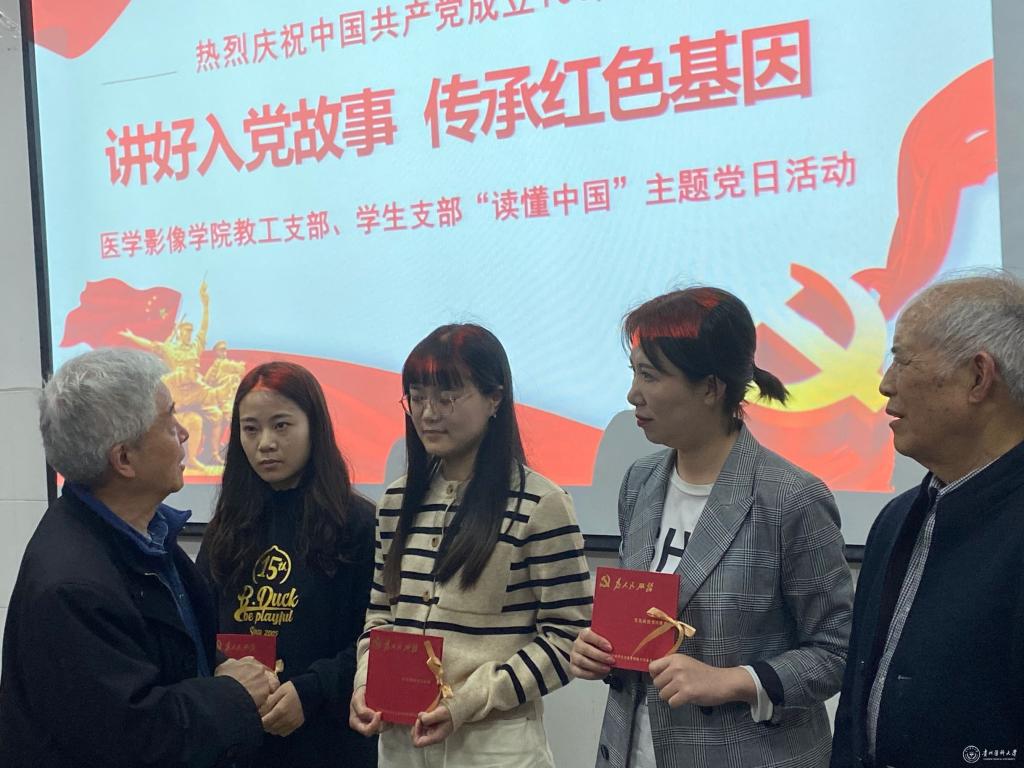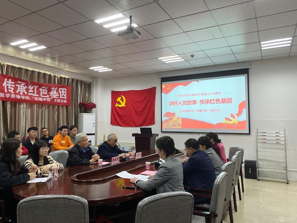 为迎接庆祝建党100周年,积极响应教育部号召开展“读懂中国”活动。4月20日,医学影像学院以“讲好入党故事,传承红色基因”为主题,特邀原贵阳医学院附属医院影像科退休教师尚国燕、魏渝清两位老党员讲入党初心及为党奋斗真实感悟,将红色精神代代传承。学院党委班子成员、教职工党支部全体党员、学生党支部全体党员以及入党积极分子参加。活动由我院正处级组织员李兴主持。
