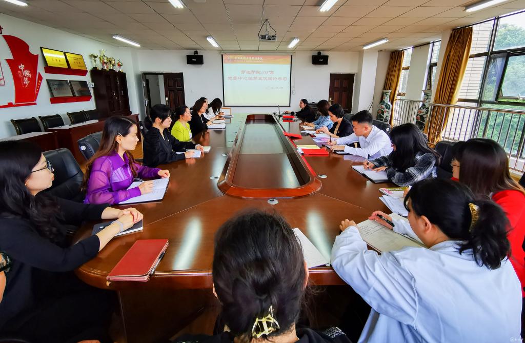 会上,杨英传达学习习近平总书记在清华大学考察时的重要讲话精神;党委副书记何为领学《中国共产党简史》中“中国共产党的成立和民主革命纲领的制定”“遵义会议和红军长征的胜利”等篇目;党委委员、副院长刘志燕传达学习省委第二十届九次全会精神,领学《关于严肃各基层党委(党总支)换届纪律的通知》《中国共产党统一战线工作条例》。