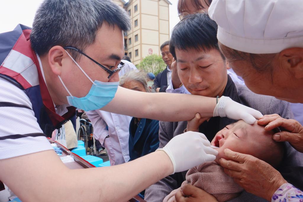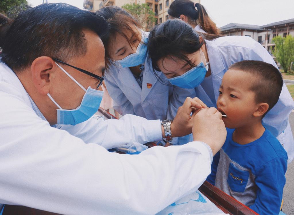 义诊活动现场前来咨询的市民络绎不绝,大家耐心地为每一位市民进行口腔检查,认真讲解口腔卫生保健知识,详细回答关于口腔健康的各种疑问。乌丹旦和吴睿共同为当地唇腭裂患儿做手术前期检查。