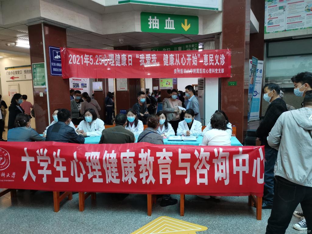 上午,大学生心理健康教育与咨询中心与附属医院精神科联合在附属医院门诊楼开展“我爱我,健康从心开始”心理健康日惠民宣传义诊活动。活动现场,大学生心理健康教育与咨询中心主任王艺明、副主任彭丹与中心成员一起,面向公众发放心理健康知识宣传资料,提供心理健康知识咨询,解答来访群众关心的有关睡眠障碍、抑郁症、焦虑症、青少年情绪障碍等精神心理健康问题。