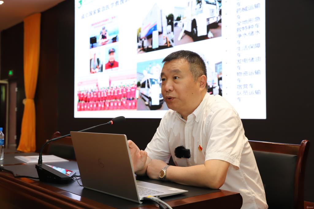 邓进以《学党史 强信念 永担当 做表率》为题,从抗疫征程和学习体会两方面为大家讲述了国家紧急医学救援队(贵州)驰援武汉的故事,分享了切身感受。