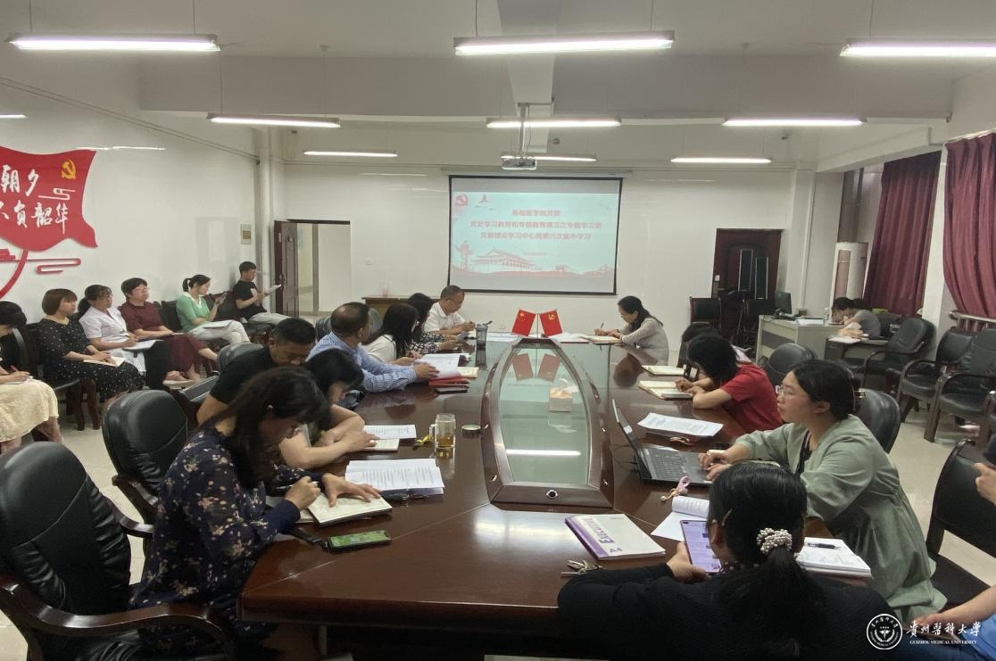 6月9日,基础医学院在南校区务本楼会议室召开“改革开放新时期历史”专题学习暨党委理论学习中心组第六次集中学习,会议由学院党委书记王妤煜主持,院长禹文峰、副书记张贤、副院长舒莉萍、副处级组织员刘亮,党支部书记、各职能科室负责人、全体辅导员参加,副院长张春林、徐红列席。