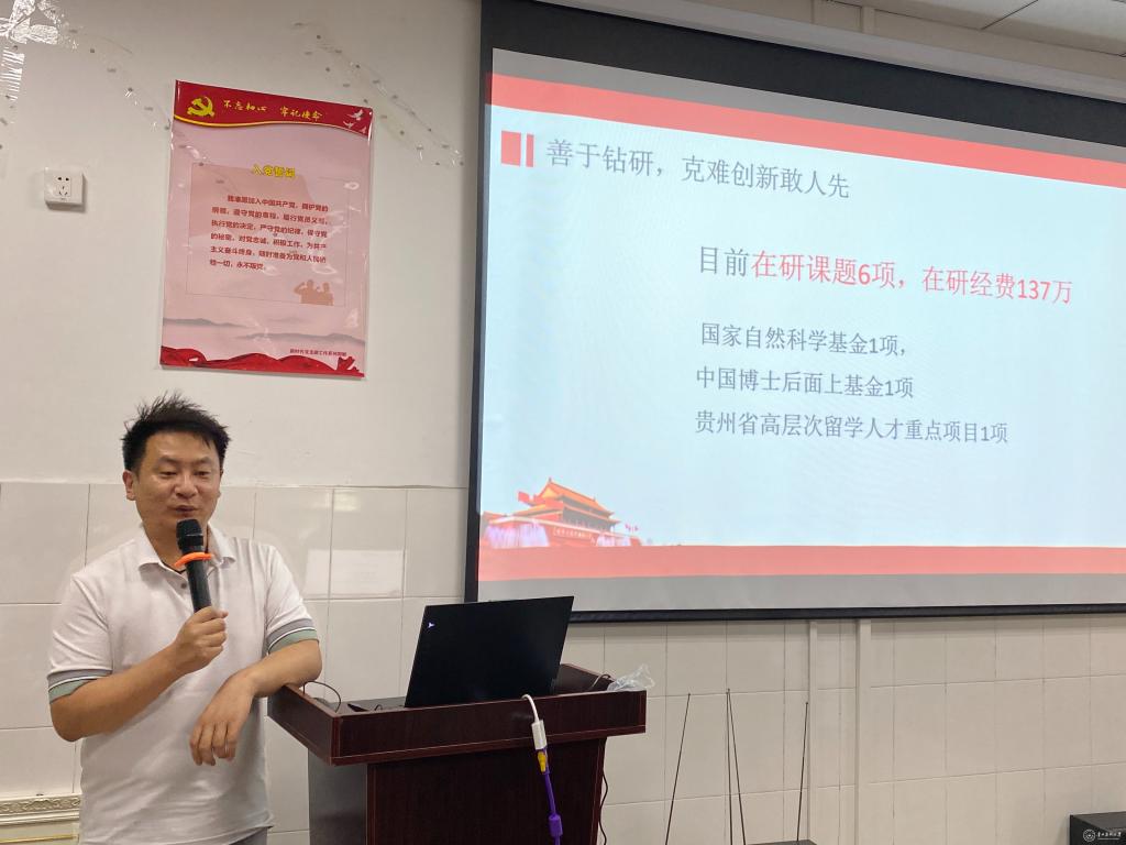 为庆祝中国共产党成立100周年,推动党史学习教育扎实开展,6月22日,贵州省2020年劳动模范、贵州省肿瘤医院介入科医师张帅同志走进医学影像学院,开展“劳模精神 红色传承”宣讲活动。学院党委副书记姚琨主持,全体师生党员参加。
