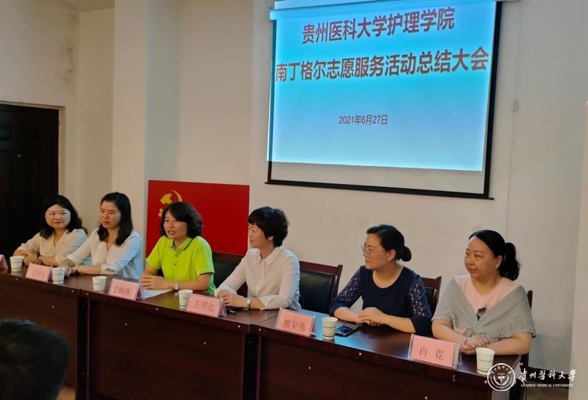 6月27日,护理学院在贵阳市油榨街社区晚霞彩带老年人日间照料中心召开南丁格尔志愿服务活动总结大会,贵钢医院党总支书记、日照中心法人代表丁晓燕,护理学院副院长王秀红,护理学基础教研室副主任熊吴燕,教师肖霓、王芸芸、王先美及护理学院护理学、助产学2018级学生代表参加,由熊吴燕主持。