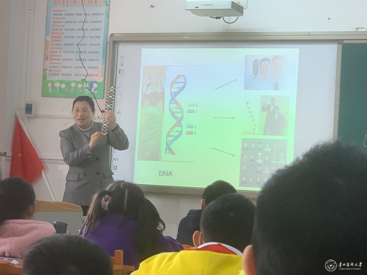 李红梅老师到南明小学五年级8班,给小学生们进行生物学知识的普及,介绍《医学生物化学》的内容,着重介绍了DNA与基因的相关知识,并鼓励同学们努力学习,发现自己的优点和特长,将来成为社会有用之人。