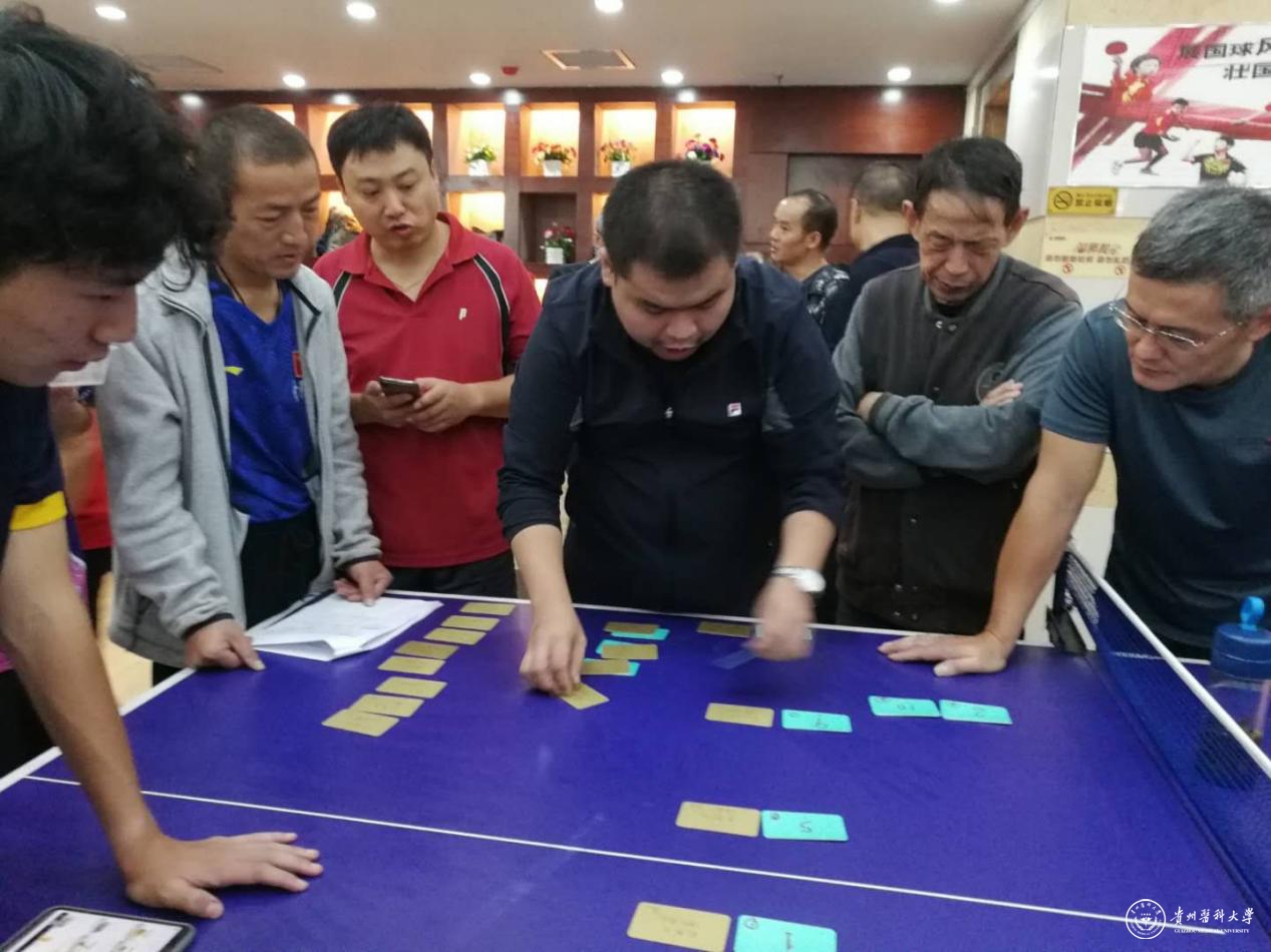 肖勃老师连续5年获得校级乒乓球5连冠的突出成绩,他利用周末时间,充分发挥自己的体育特长优势,义务为队友们指导乒乓球比赛的编排。