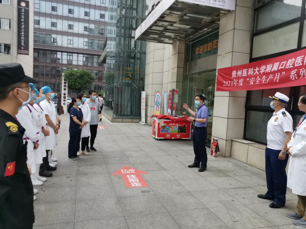 6月21日,口腔医(学)院在医院接诊大厅开展消防安全演练,云岩区消防救援大队三级指挥长张桂钢现场指导,口腔医(学)院副院长唐正龙主持,全院职工、学生和物业单位积极参加。