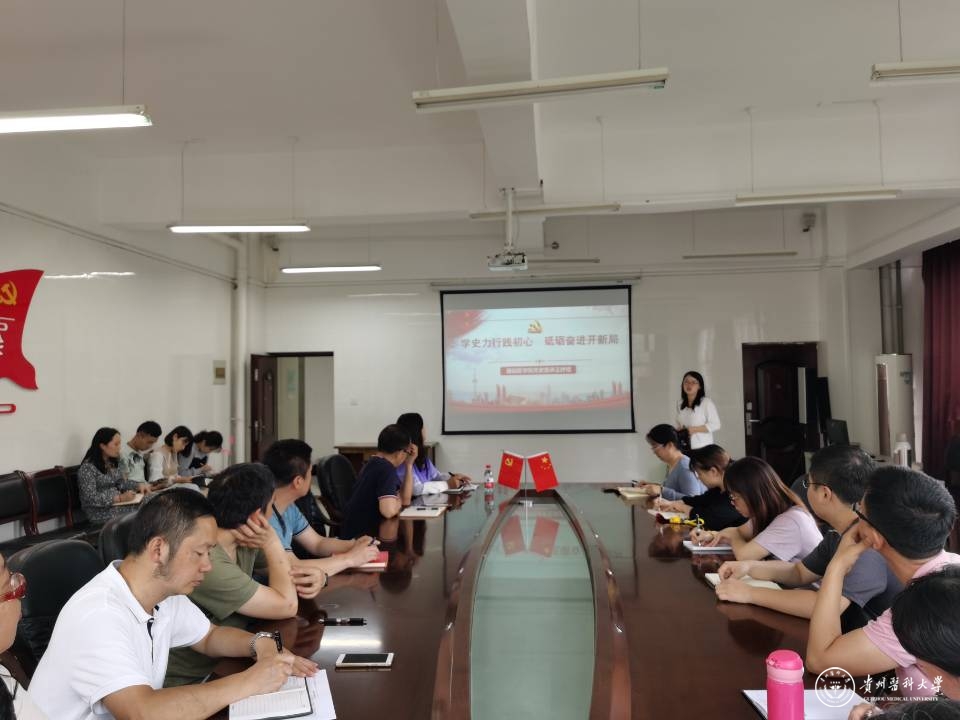6月30日,基础医学院党委书记王妤煜在务本楼会议室为党支部书记、师生党员代表进行党史专题宣讲,主题为《学史力行践初心,砥砺奋进开新局》。